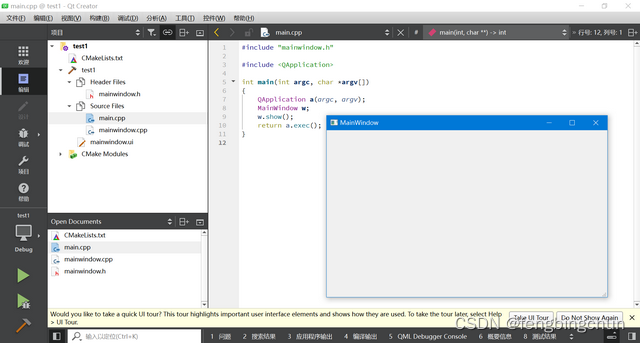 3. 使用Qt Creator创建一个Qt Widgets项目: