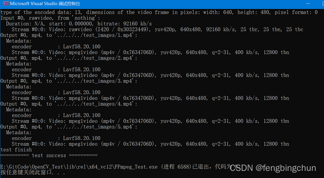 以下测试代码实现的功能是:持续从内存块中获取原始数据,然后依次进行解码、编码、最后保存成mp4视频文件。