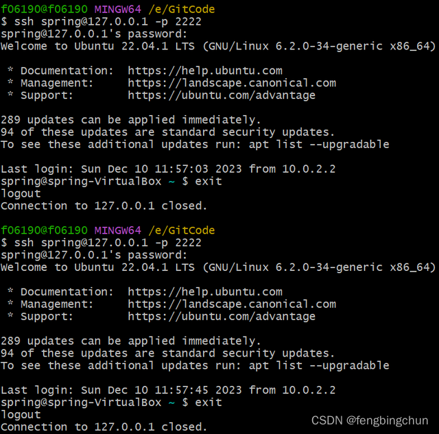 (1).windows10通过ssh登录ubuntu虚拟机:可见通过ssh登录不再需要输入密码