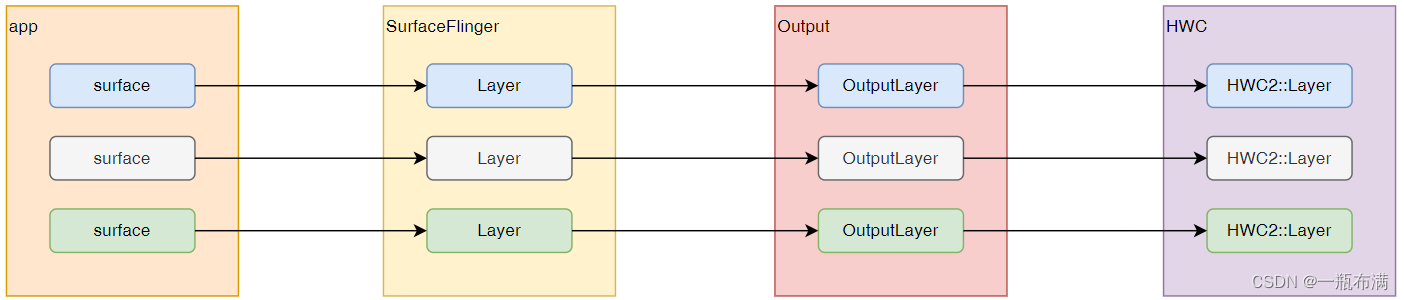 02 最简单的SurfaceFlinger应用程序 获取屏幕大小 SurfaceComposerClient::getActiveDisplayMode(displayToken, &displayMode);获取要显示的屏幕,这里获取的是主屏SurfaceComposerClient::getInternalDisplayToken。设置surface属性;推图 surface->unlockAndPost()创建SurfaceComposerClient。创建SurfaceControl。向buffer里填充图像数据。