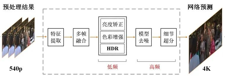 低频方面,需要做亮度矫正、色彩增强和SDR转HDR (即inverse tone mapping)