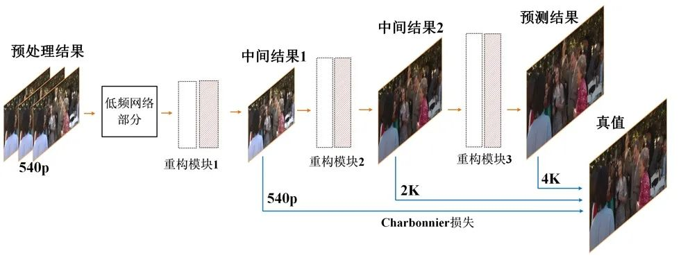 将前面几个模块串联起来之后,计算多尺度损失,这样可以提高训练效率。模型训练好之后,输出中间的预测结果。