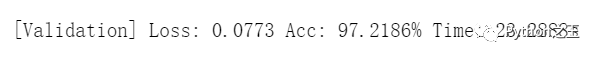 print('[Validation #{}] Loss: {:.4f} Acc: {:.4f}% Time: {:.4f}s'.format(epoch, epoch_loss, epoch_acc, time.time() - start_time))