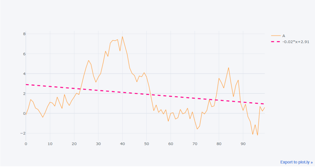df3['A'].iplot(bestfit = True,bestfit_colors=['pink'])