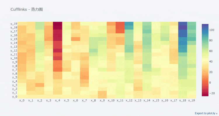 cf.datagen.heatmap(20,20).iplot(kind='heatmap',colorscale='spectral',title='Cufflinks - 热力图')