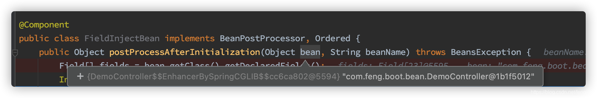 public class FieldInjectBean implements BeanPostProcessor, Ordered {