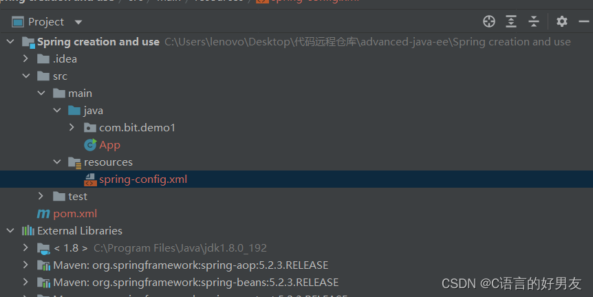 从上述的配置中可以看说,添加的框架有spring-context:spring上下文,还有spring-beans:管理对象的模块。