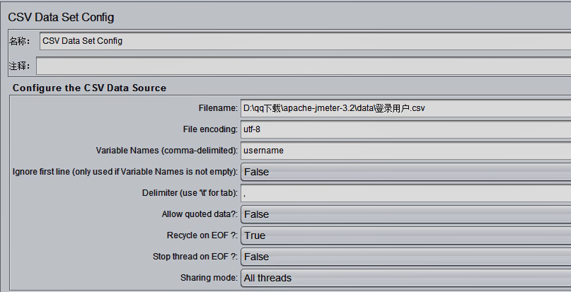 需要用到:CSV Data Set Config