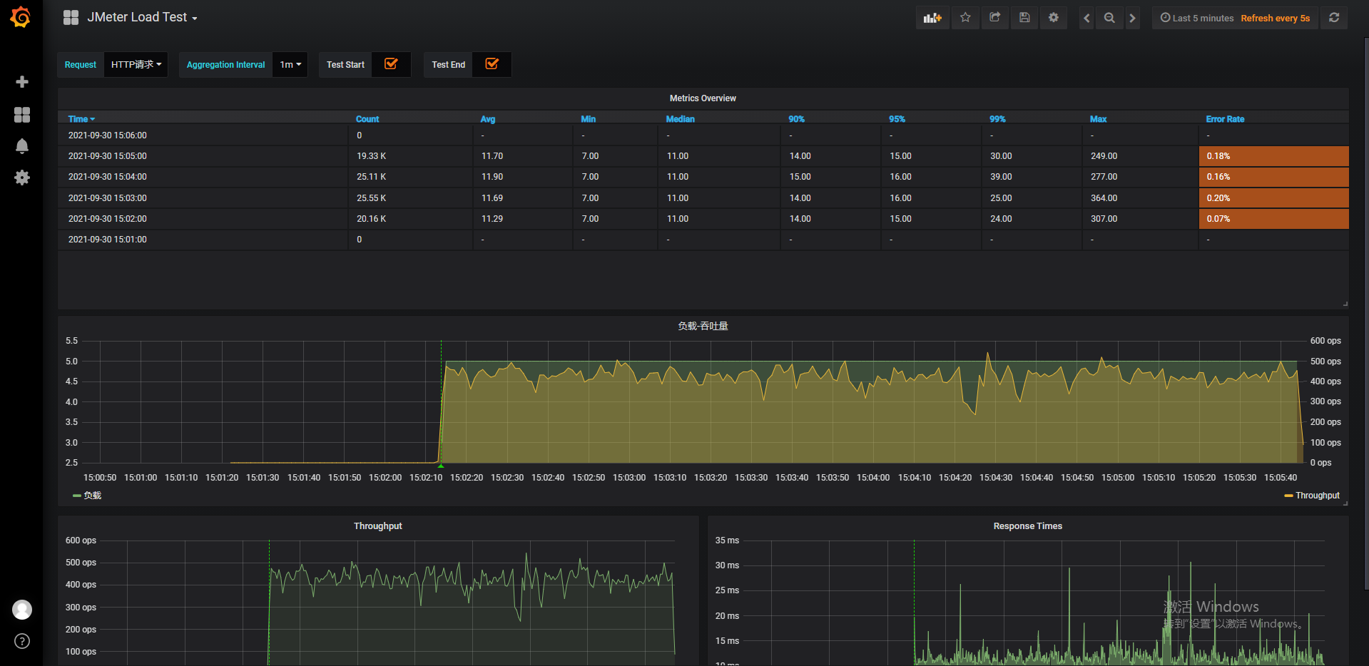 运行 JMeter,观察 Grafana 数据