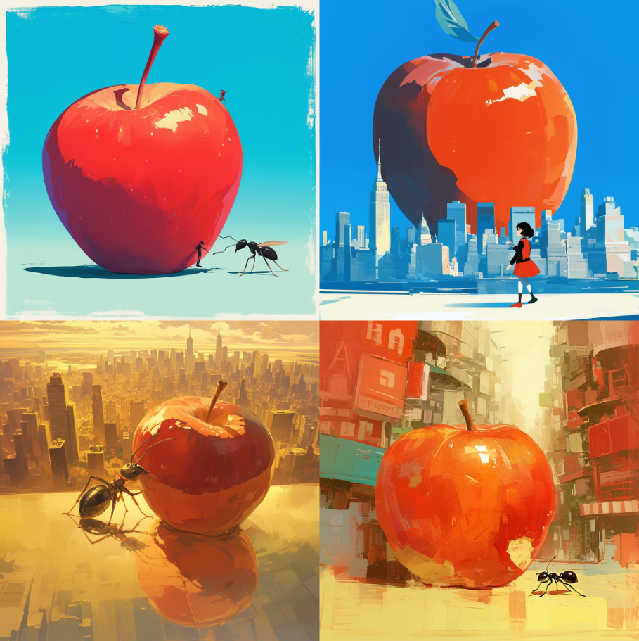 an ant walks in front of a big apple