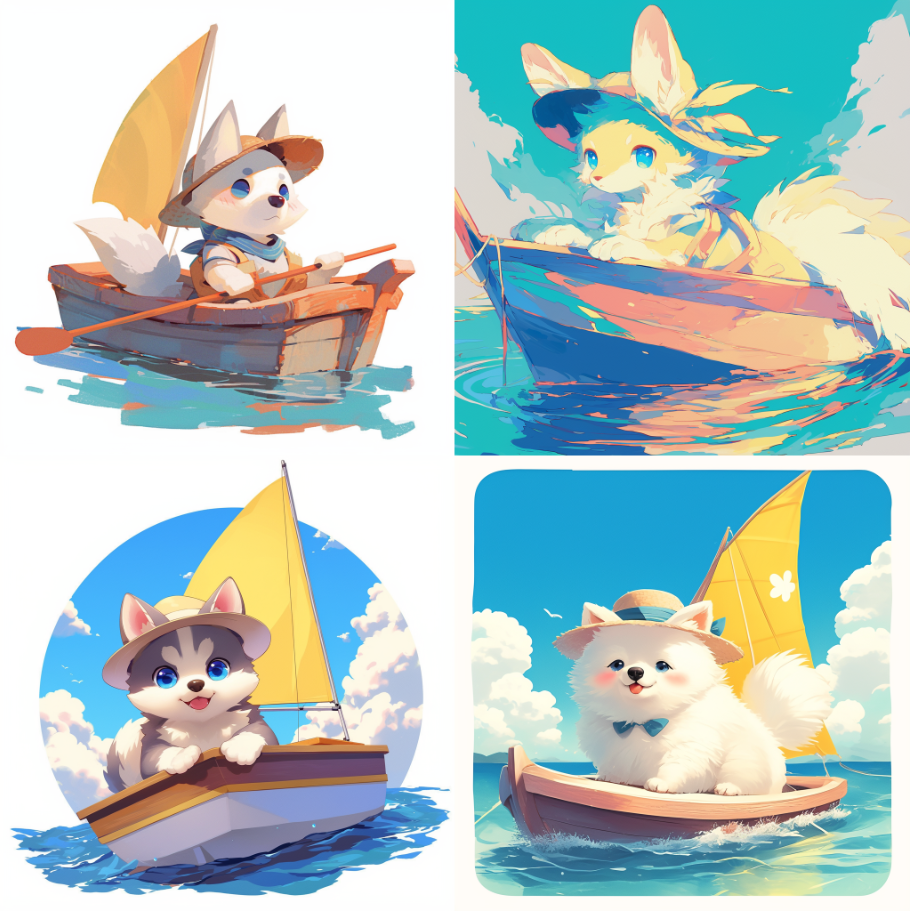 右上↗️的图:缺少风帆,而且小狗🐶的毛发也不是白色的