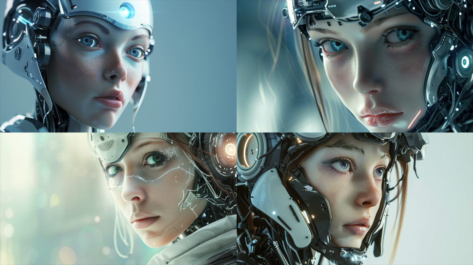 futuristic portrait of a beautiful human-droid hybrid woman --ar 16:9