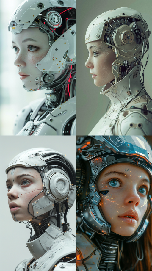 futuristic portrait of a beautiful human-droid hybrid woman --ar 9:16