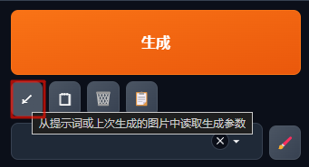 点击 「↙️」,提示词和参数配置,都会按照上次生成图片的内容进行恢复