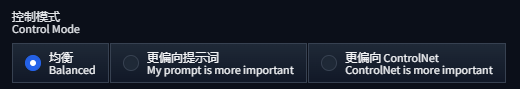 默认选择「均衡」,指的是 提示词 与 ControlNet 之间相互平衡地影响出图效果。