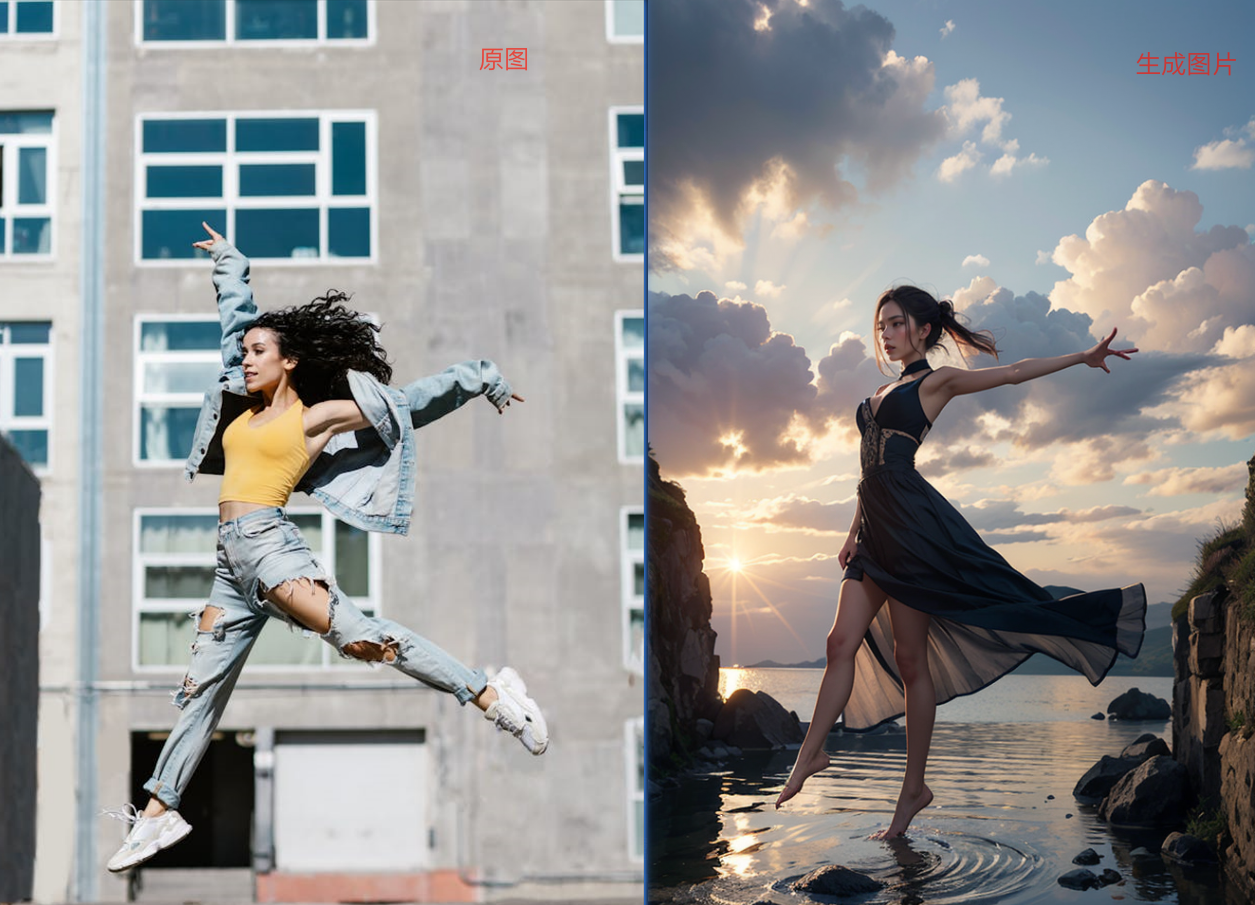 生成图片,手部与腿部的姿势跟原图差异都比较大: