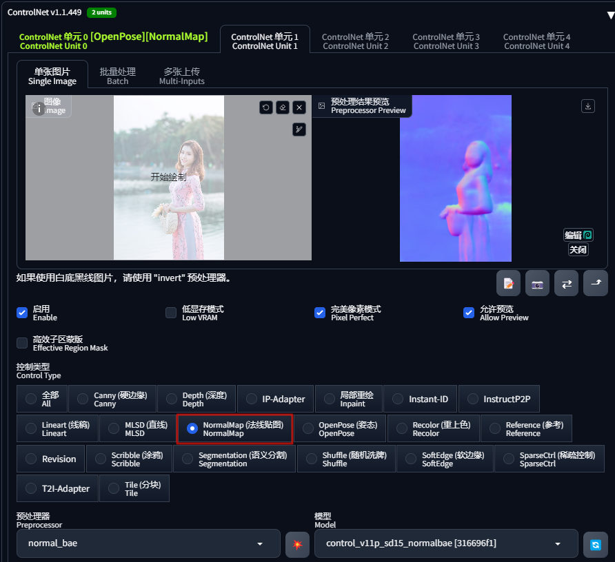 ControlNet 的法线控制可以把任何的图片转化为法线贴图,从而能够获取画面的凹凸与光影情况。