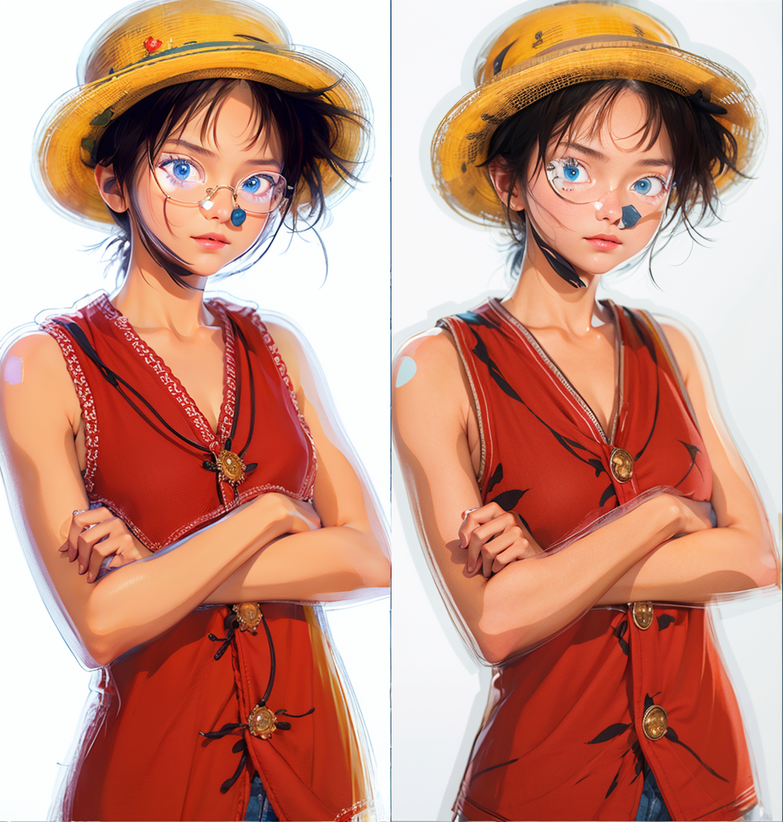 提示词输入:1girl, 点击生成后,就可以得到女装版的路飞:
