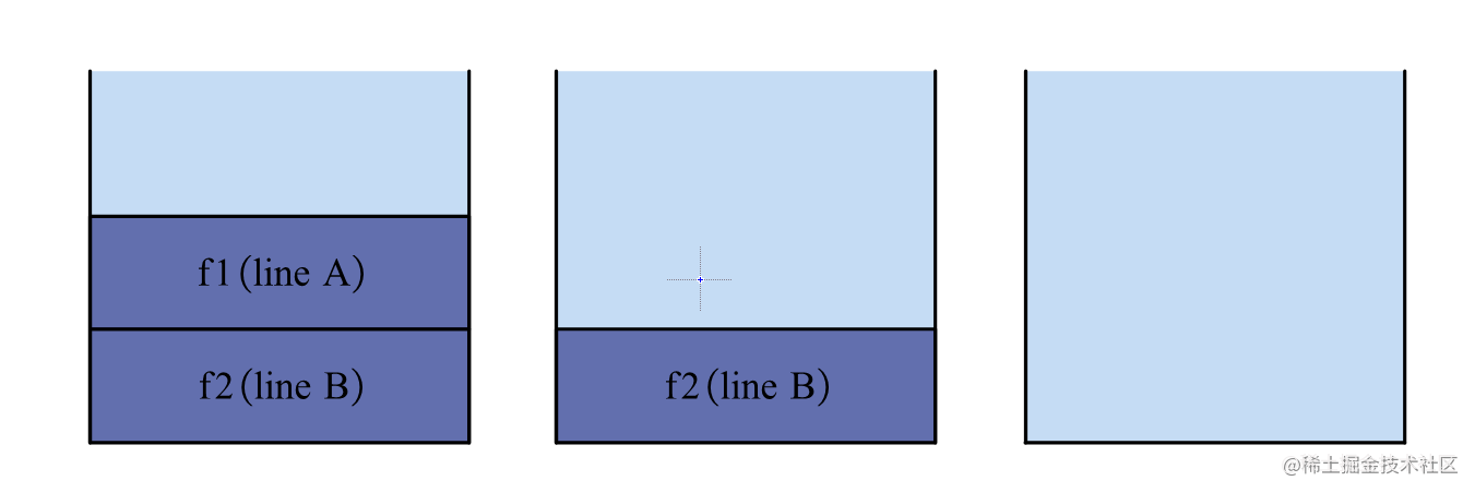 - 调用函数f2,f2入栈,并记录下调用它的地方,以便知道返回值。