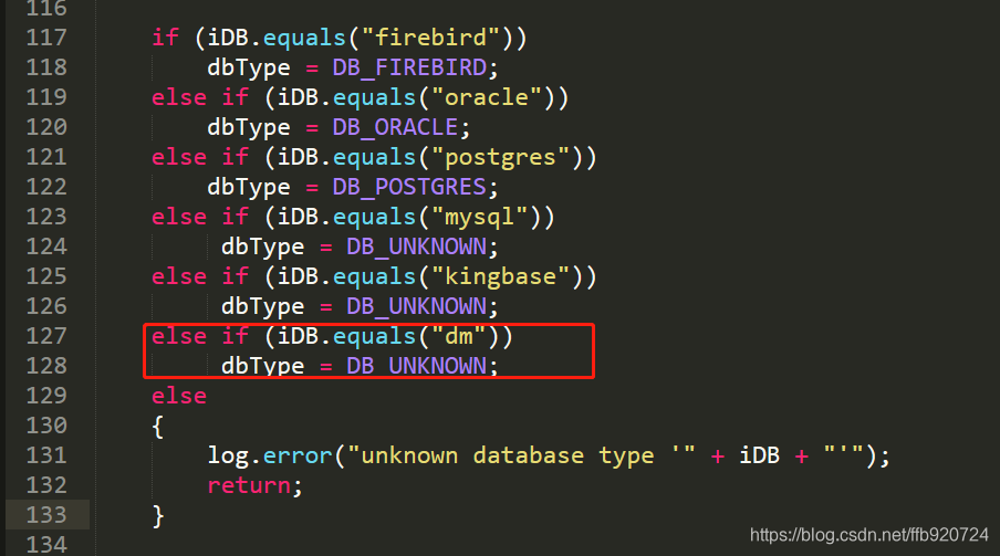 2.1 修改 src/client/jTPCC.java,增加dm相关部分,如下所示,(保持和MySQL一致)