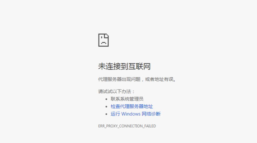 使用浏览器出现如图下err_proxy_connection_failed问题: