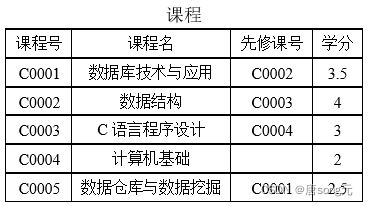 课程关系:课程号是主码;先修课号是外码,取值参照了选课关系的主码“课程号”的值