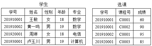 (张三, DB, 60), (李四, DB, 60), (张三, OS,60),(李四, OS,60),(张三, DB, 70),