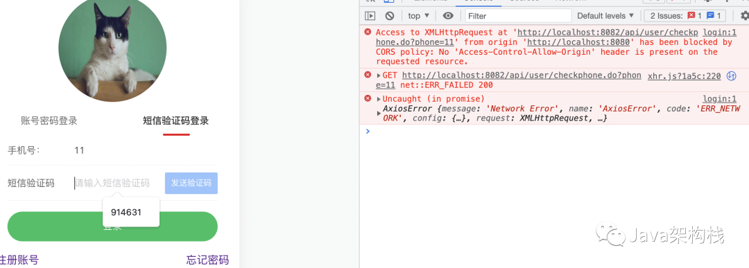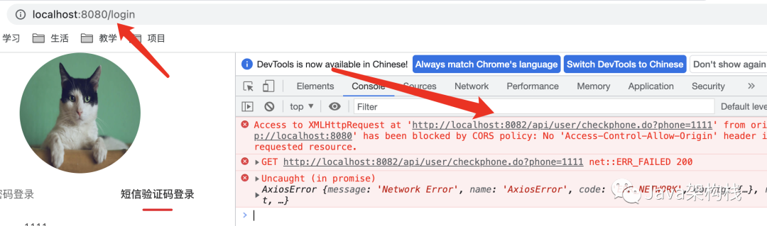 这里我们页面的访问地址是:http://xxx:8080/login,接口的访问地址:http://xxx8082/xxxxx,这里两个地址的端口号一个是8080,一个是8082,在同源策略下,这属于2个完全不同的网站!也就是说,我们的前端项目和后端项目,是2个不同的网站!浏览器不允许从前端这个网站直接访问后端那个网站里的接口!