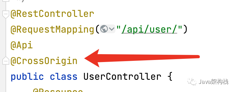 今天辉哥给大家介绍一个比较简单的后端解决方法,我们可以在后端代码中直接使用一个@CrossOrigin注解,修饰对应的类或者方法就可以搞定,代码如下: