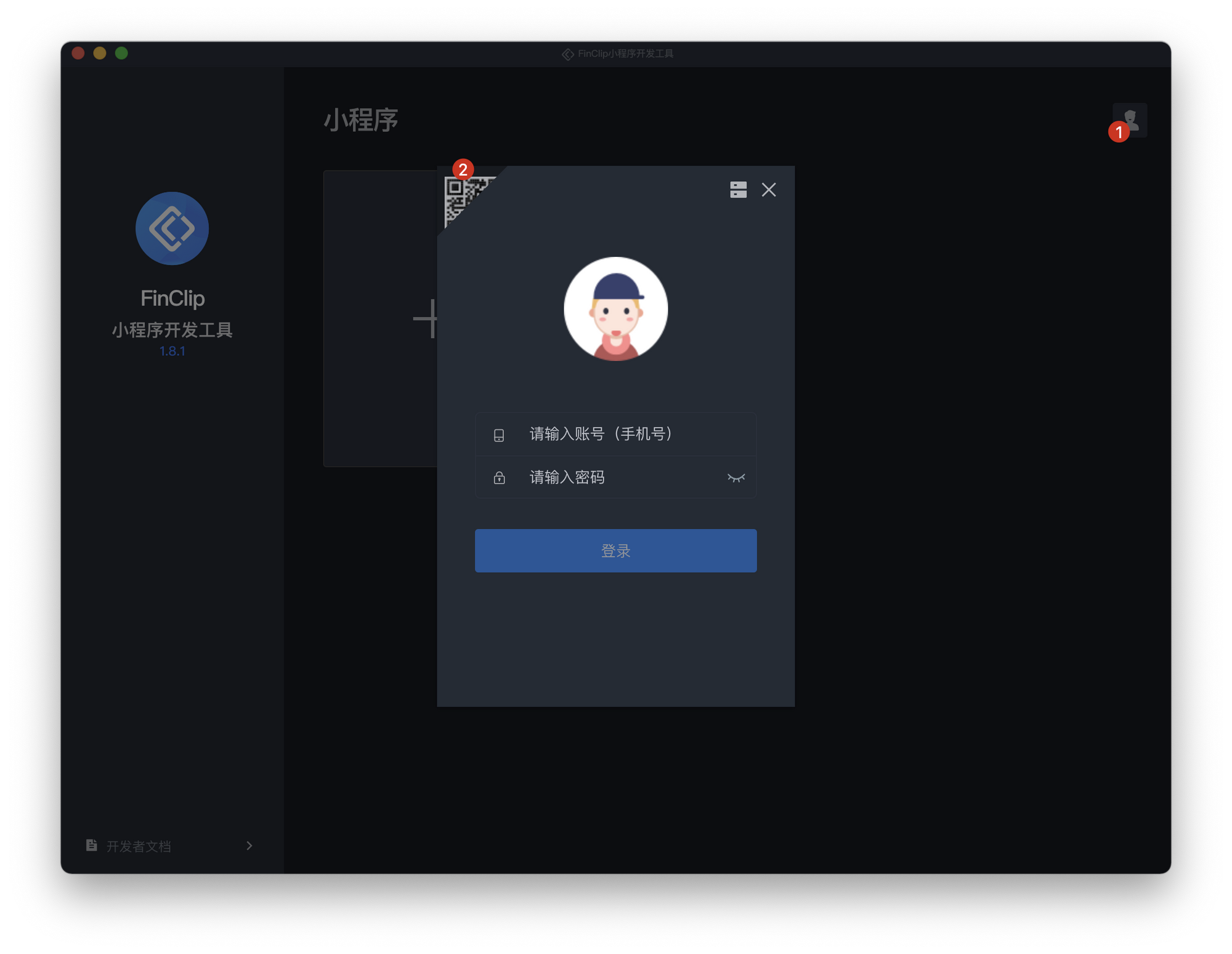 如果你已经下载了移动应用「FinClip」并完成了账户登录的话,也可以点击「2-切换登录方式」,使用扫码的方式进行登录。