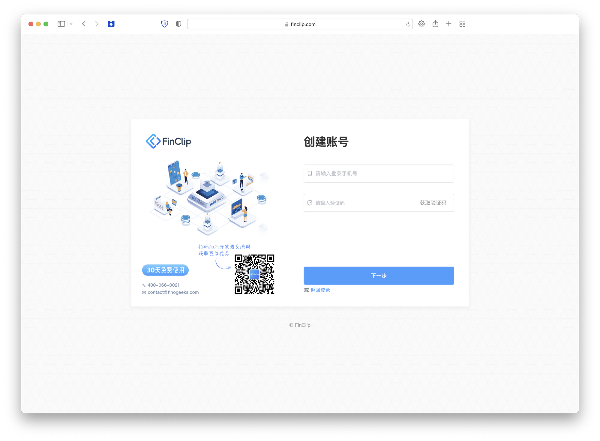 FinClip 注册页面
