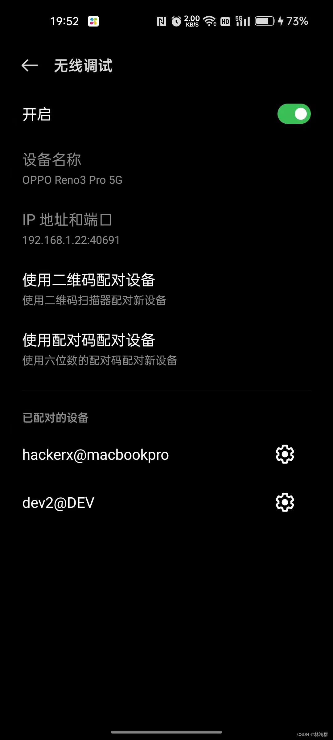 已启用后无线调试变成绿色 ,点击无线调试进入详情页面