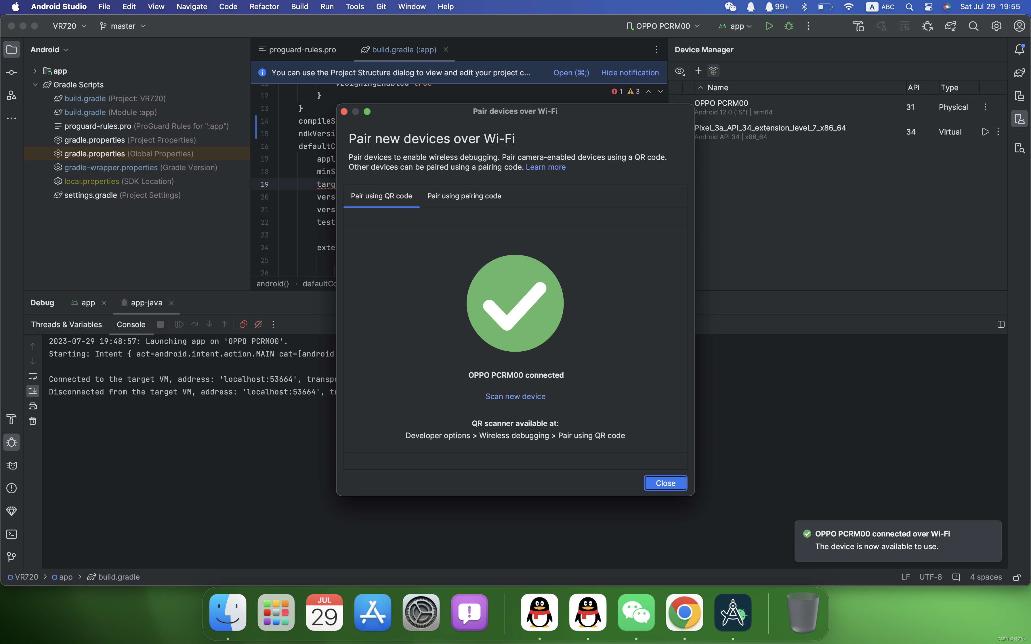 打开手机的开发者选项中的WIFI调试(无线调试)下的使用二维码配对设备进行扫描.