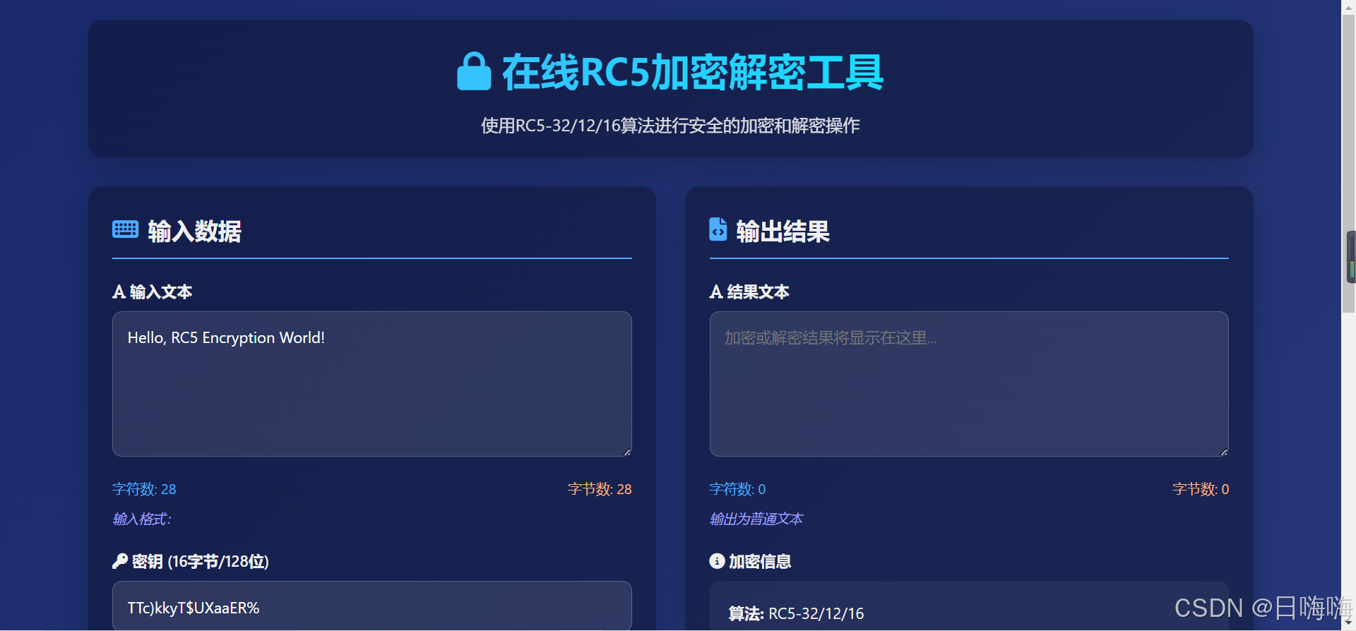 在数字化时代,无论是工作中传输敏感文件、客户信息,还是个人保存隐私数据、传输重要内容,数据泄露的风险始终如影随形。想要给核心信息加一层 “安全锁”,却苦于找不到简单易用、安全可靠的加密工具?今天给大家安利一款宝藏工具 —— 在线 RC5 加密解密工具(http://www.rhihi.com/fun130.html),无需下载安装,打开网页就能用,轻松守护你的数据隐私!