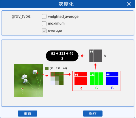 对于彩色图像的每个像素,它会将R、G、B三个通道的像素值全部加起来,然后再除以三,得到的平均值就是灰度图像中对应位置的像素值。