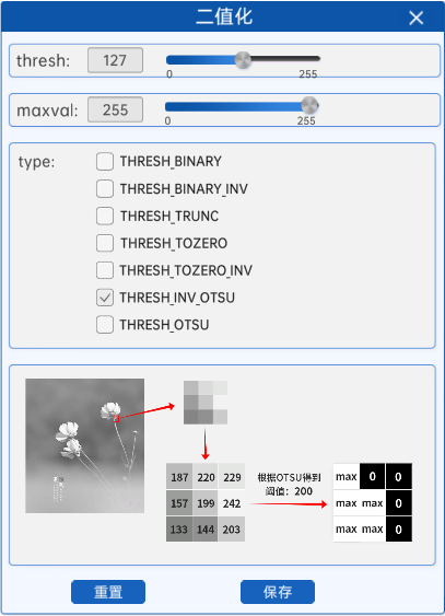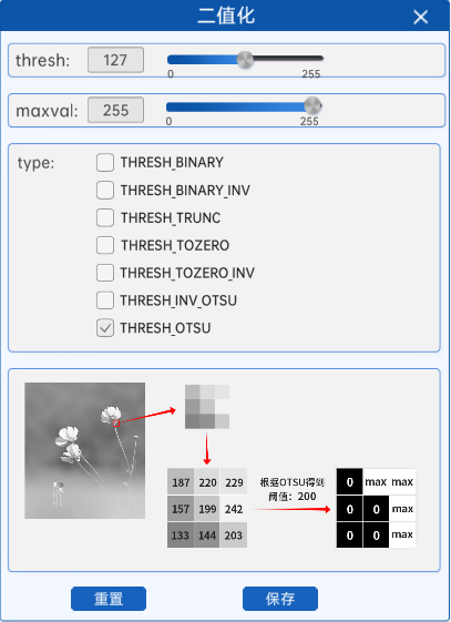 注意:使用OTSU算法计算阈值时,组件中的thresh参数将不再有任何作用。