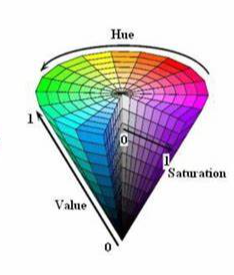 HSV颜色模型是一种六角锥体模型,如下图所示: