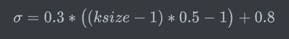 而当kernels尺寸超过7的时候,如果sigma设置合法(用户设置了sigma),则按照高斯公式计算.当sigma不合法(用户没有设置sigma),则按照如下公式计算sigma的值:
