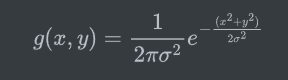 此时我们拓展到二维图像,一般情况下我们使x轴和y轴的相等并且,此时我们可以得到二维高斯函数的表达式为: