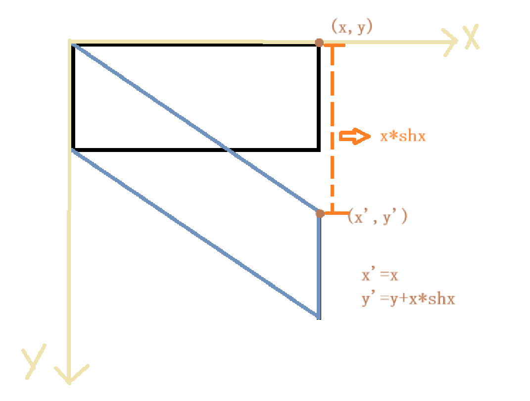 沿x轴剪切:x'=x+sh_y*y y'=y