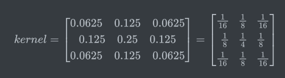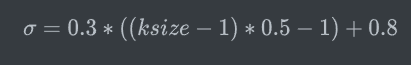 其中的值也是与自适应二值化里的一样,当时会取固定的系数,当kernel大于7并且没有设置时,会使用固定的公式进行计算σ的值: