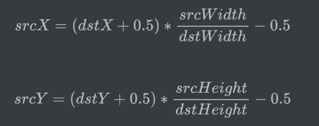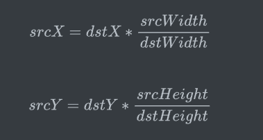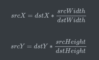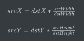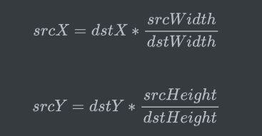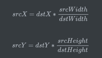 而srcX和srcY:目标图像中的某点对应的原图中的点的x和y的坐标。