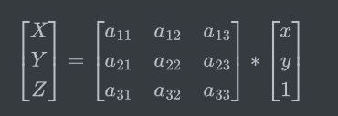 输入点的坐标被扩展为齐次坐标形式[x,y,1],以便能够同时处理线性变换和平移