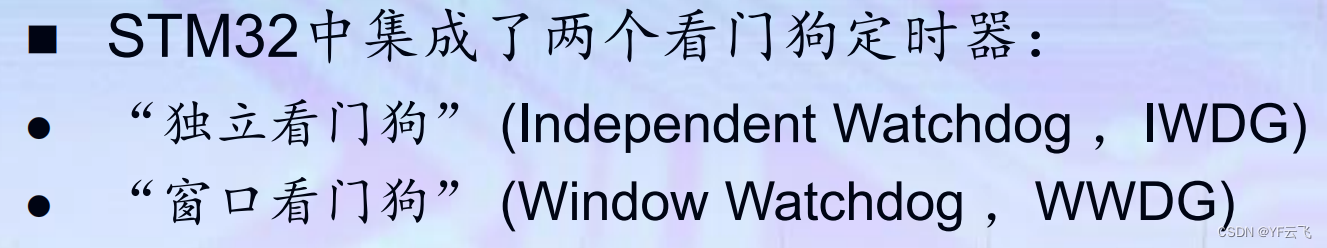 4、看门狗定时器:包括一个 12 位独立看门狗(IWDG)和一个 7 位窗口看门狗(WWDG)。