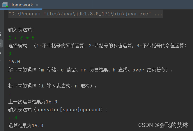 一个简单的计算器功能,我是按照老师的课程设计指导书分步骤来的,所以写的垃圾代码比较多,形成了一座“大屎山”,如果正常写的话,完全可以用最后一步将输入数字以及操作符放在栈中进行操作,当select=3时的代码会有一些帮助,输入格式都是带空格的,这里面也包含了一些其他功能: