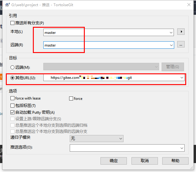添加需要提交的远程项目地址: