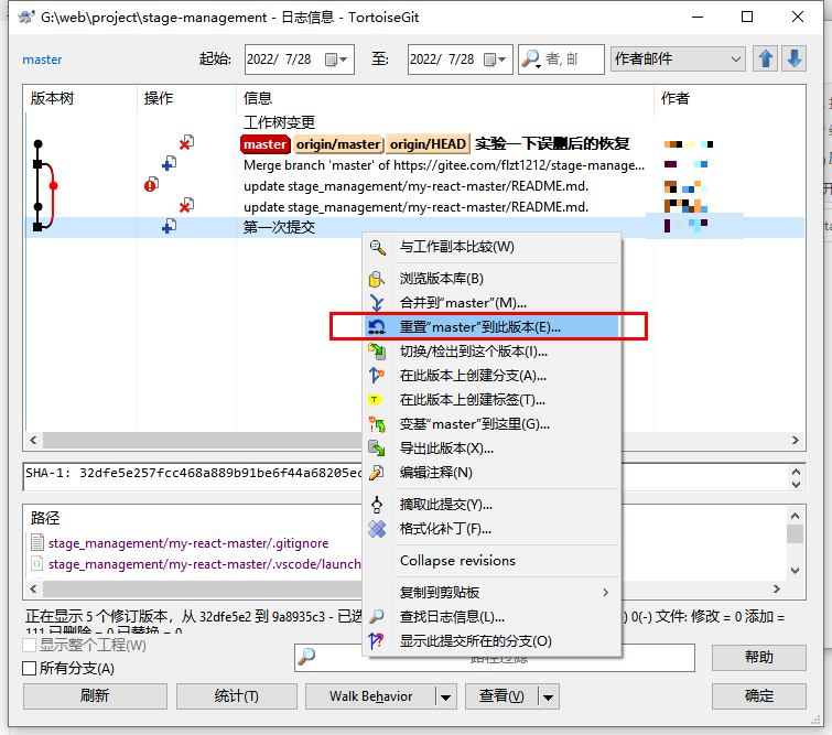 采用TortoiseGit 回退: