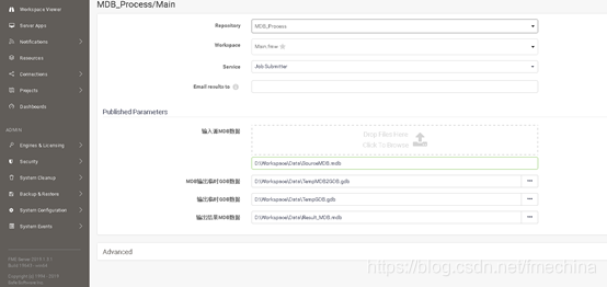 将制作的主模板发布到64位FME Server中运行,即可在一个任务中实现MDB数据在只有64位FME Server中处理的需求。