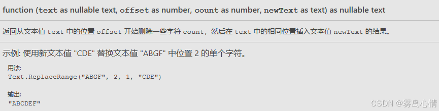 Text.ReplaceRange函数适用于部分内容替换,目前有四个参数。