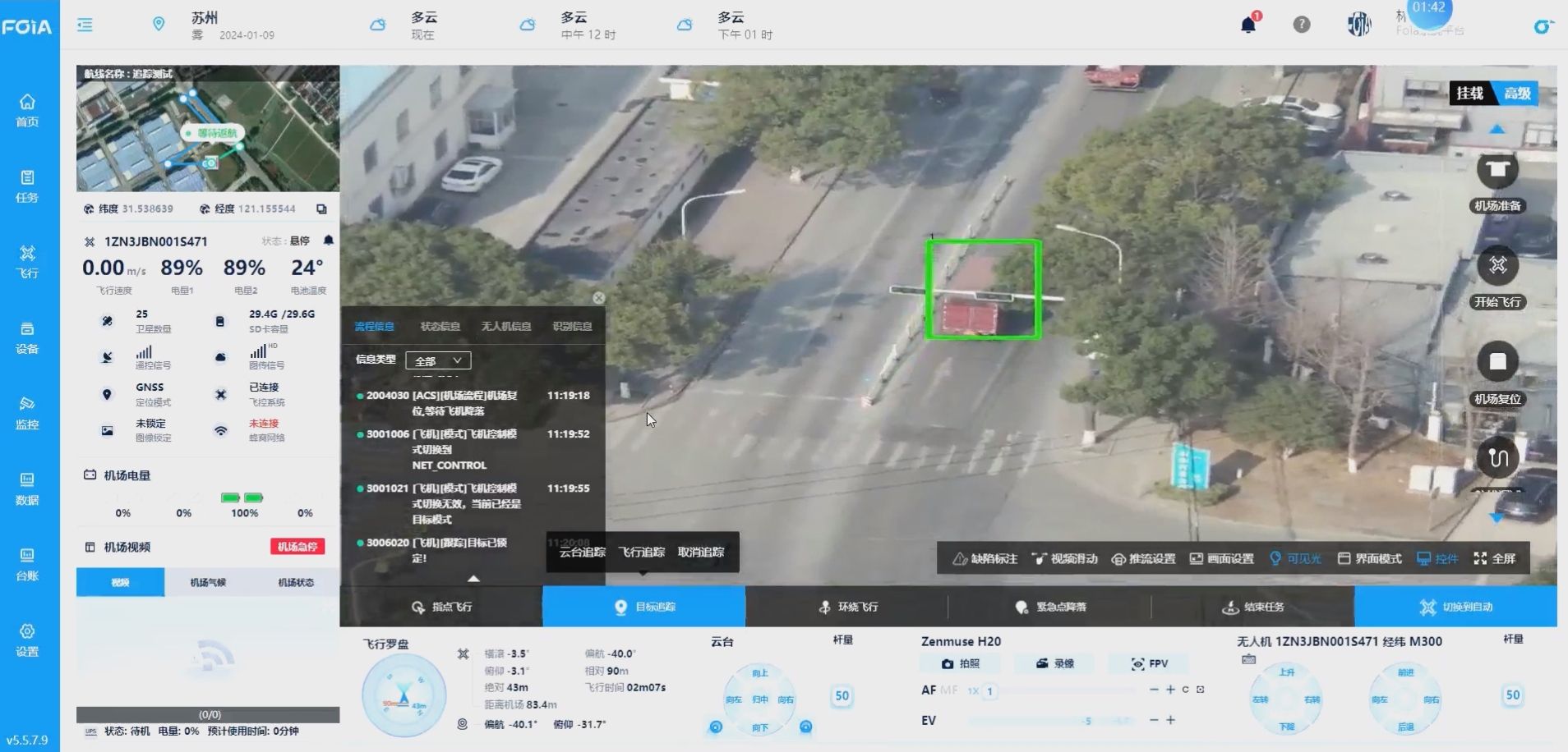 车辆跟随与车牌识别复亚智能的无人机AI识别算法可实现对移动车辆的实时捕捉、识别和稳定追踪,即使在目标被遮挡的情况下也能维持追踪并在遮挡解除后迅速恢复,同时支持车牌号码的实时识别与记录,为管理部门在交通监控、安全检查、事故调查等方面提供关键信息。在浙江该交通管理的成功应用中,复亚智能的无人机AI算法与复亚无人机管理平台高度结合,不仅有效提升了交通管理的自动化水平,还通过一键起飞、实时监测、快速识别和及时告警、结果跟进等,形成了完整的交通管理闭环。实战案例:浙江某交通实战应用。